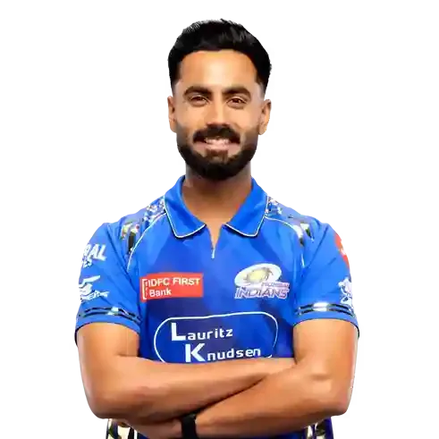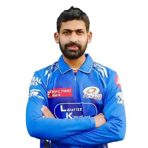 Raghu Sharma is a domestic spin bowling talent who provides Mumbai Indians with an additional slow bowling option. His accuracy and ability to flight the ball make him a reliable choice in the IPL 2026 squad.